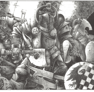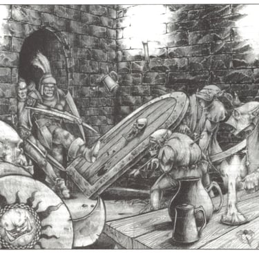The Empire in Flames features interior art also used in the Advanced Heroquest rulebook. Could you shed some light on the history of these illustrations? Were they commissioned specifically for The Empire in Flames, or was the artwork originally developed for Advanced Heroquest and later repurposed for the RPG supplement?
